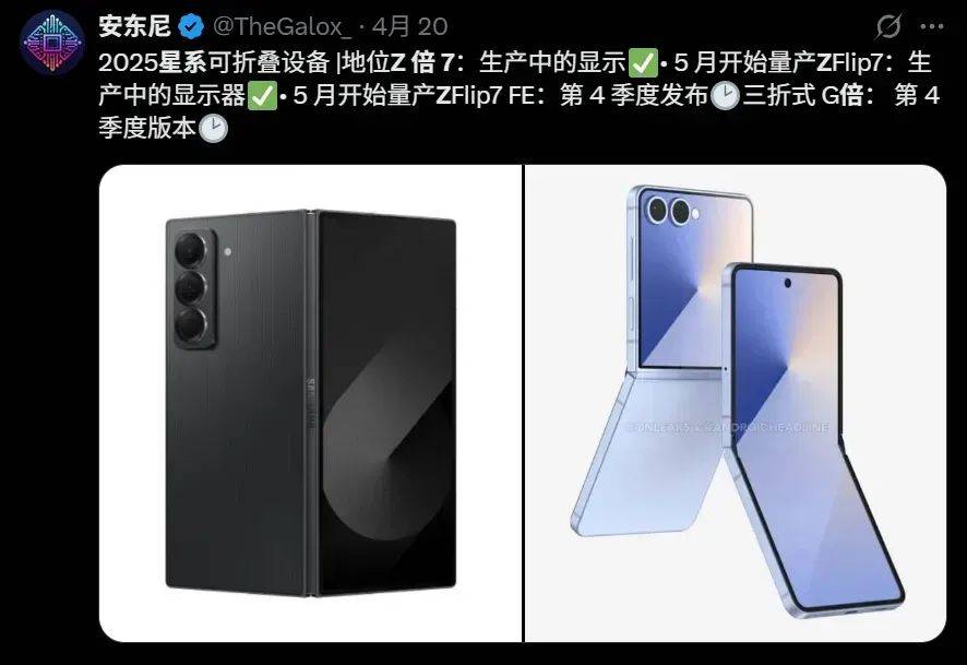 发布时间方面,这款三折叠手机预计将在今年第四季度发布。此外,三星显示从本月开始生产 Galaxy Z Fold 7 / Flip 7 的面板,并计划下个月进行量产。