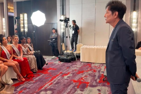 环球小姐比赛,就是把各国选出来的美女集中在一起,再训练、排练、预演,11月21日决出来个冠军。11月4日,大会举办授带仪式,全球上百万人观看直播。