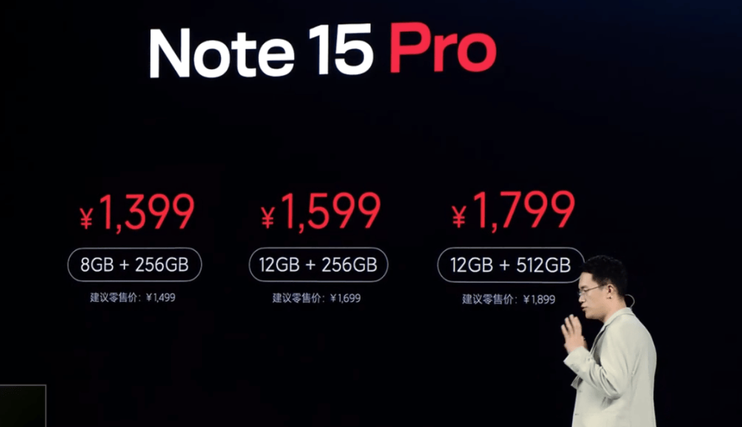 Redmi Note 15 Pro+,12GB + 256GB 售价 1899 元,12GB + 512GB 售价 2099 元,16GB + 512GB 售价 2299 元,16GB + 512GB 卫星消息版售价 2399 元 。Redmi Note 15 Pro,8GB + 256GB 售价 1399 元,12GB + 256GB 售价 1599 元,12GB + 512GB 售价 1799 元 。Redmi Note 15,6GB + 128GB 售价 999 元,8GB + 128GB 售价 1099 元,8GB + 256GB 售价 1299 元,12GB + 256GB 售价 1499 元 。